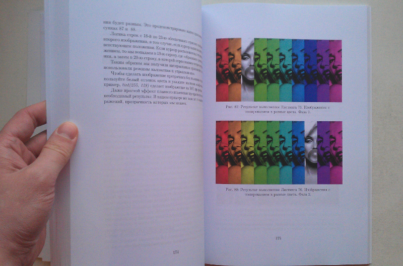 В книге множество примеров исходных кодов, пояснений, изображений. Все материалы для нее авторские, подготовленные специально для вас.